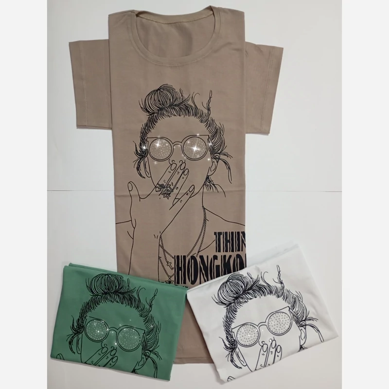تیشرت زنانه چاپی فول پنبه سوپر قواره دار از 38 تا 46 میخوره.