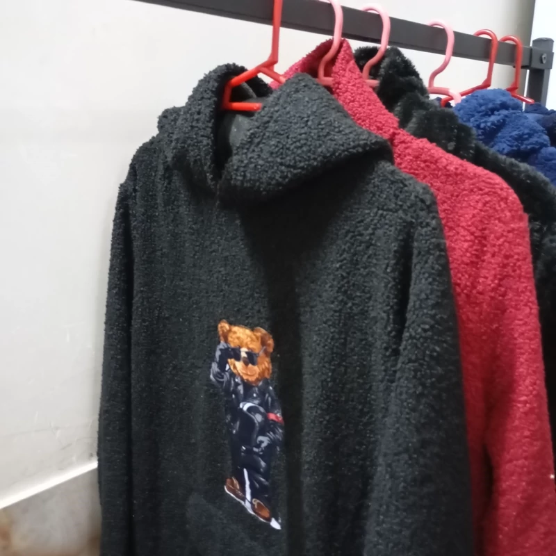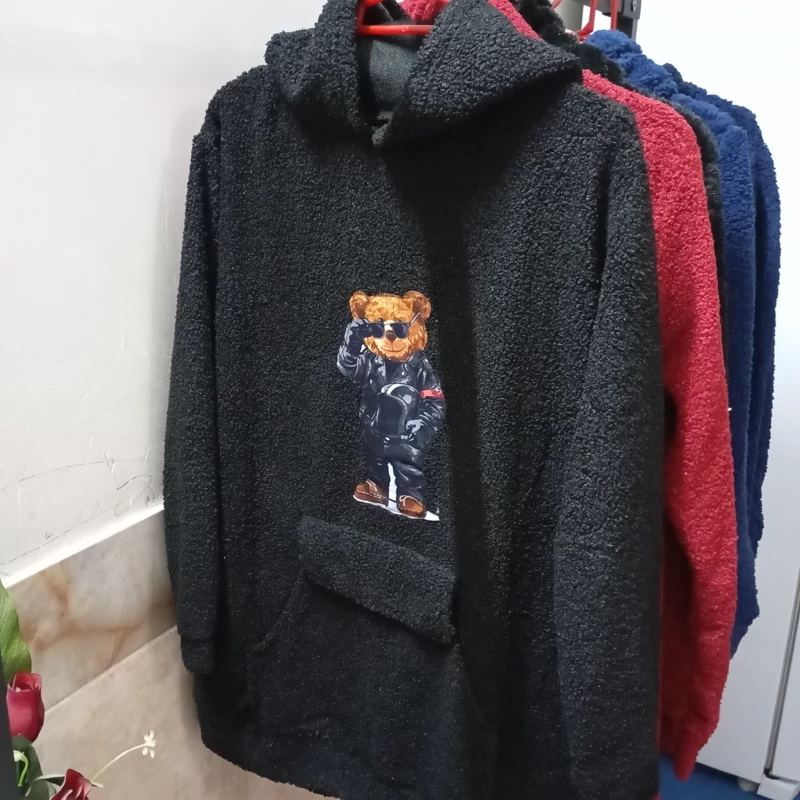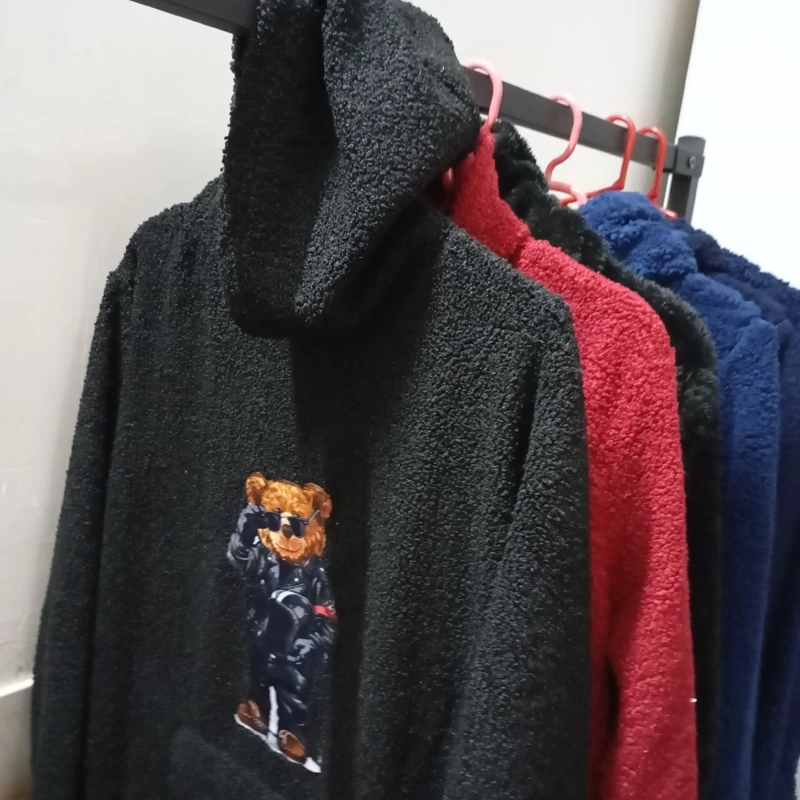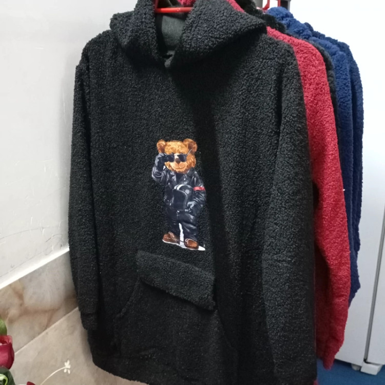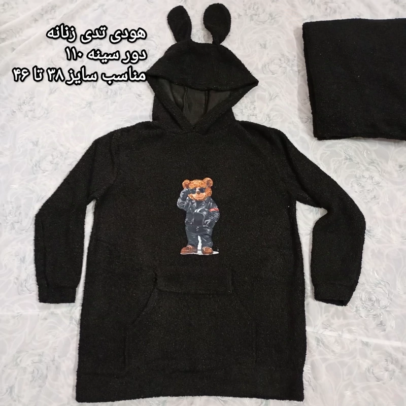 هودی تدی سویشرت مخمل زنانه دخترانه دورو ضخیم با کیفیت بالا مناسب سایز 38 تا 46 رنگبندی مشکی سرمه ای و زرشکی ####خرید سال قبل زیر قیمت##### مناسب فصل پاییز و زمستان سایز بندی در تصویر مشخص هست